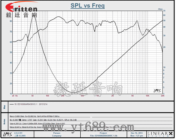 頻率范圍(freq response):53Hz~5.5KHz