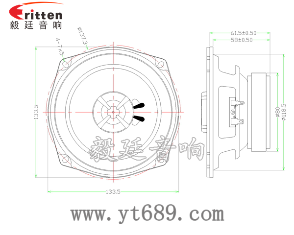 5.25寸蘋果型鐵盆架外磁全頻喇叭,采用的是高性能釹鐵硼,為達到精敏和超寬的頻率響應,加厚寬了鐵氧體,使音色靈敏度更加完美、圓潤;