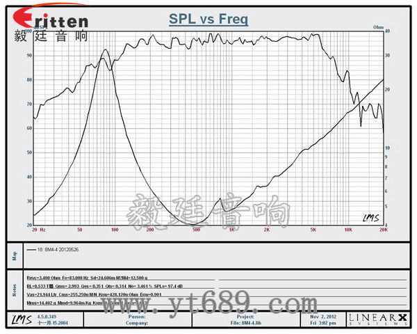 頻率范圍(freq response):83Hz~7.5KHz