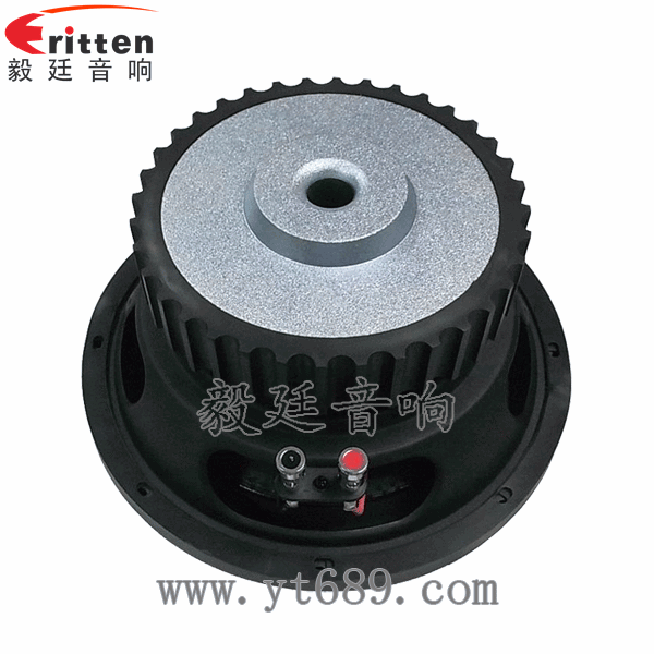 10寸圓形鐵盆架外磁重低音喇叭,采用了高性能鐵氧體,動力足,外帶磁鋼套,使喇叭外觀更加完美;