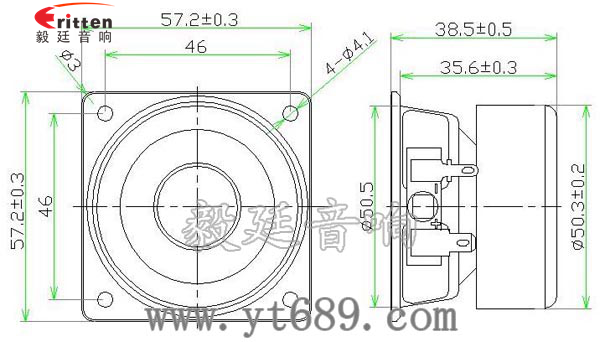 57mm方型鐵盆架外磁帶防磁罩,采用高性能鐵氧體,美妙音色能吸引到更多的人喜愛(ài)。