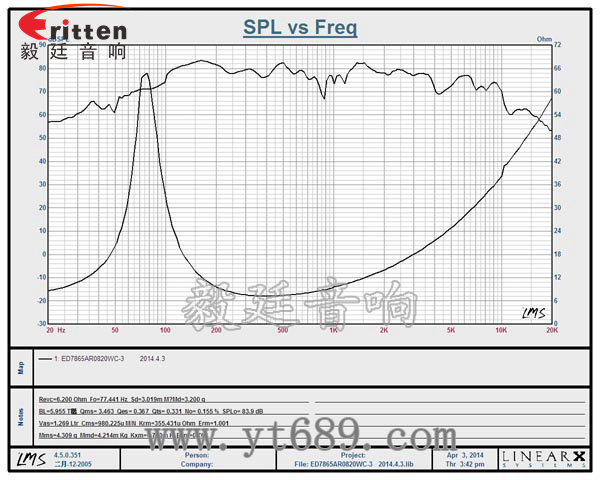 頻率范圍(freq response):77Hz~4KHz