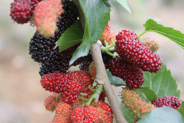 桑椹既可入食,又可入藥,中醫(yī)認(rèn)為桑椹味甘酸,性微寒,入心、肝、腎經(jīng),為滋補(bǔ)強(qiáng)壯、養(yǎng)心益智佳果。具有補(bǔ)血滋陰,生津止渴,潤腸燥等功效,主治陰血不足而致的頭暈?zāi)垦?,耳鳴心悸,煩躁失眠,腰膝酸軟,須發(fā)早白,消渴口干,大便干結(jié)等癥。桑子綠色變紅色再黑色,是一個(gè)漫長的過程↓