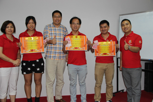 到了第二環(huán)節(jié)了,就是評比流量王,詢盤王,成交王三項,以上三家公司得到了獎狀和獎金,是不是特有成就感?值得我們爭取的;