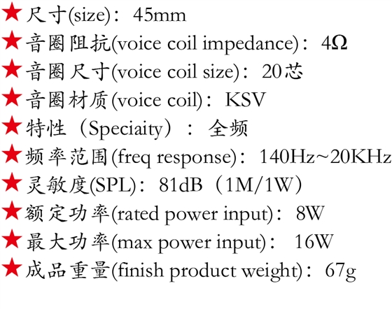 45mm學習機小喇叭2歐8瓦45mm內(nèi)磁全頻喇叭