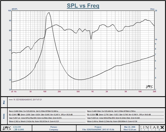 其低頻彈性非常好,下潛很深,中頻表現(xiàn)非常完美(平整走向),即使在大動態(tài)下也從容自如,在配合相等容積箱體時,低音非常的震撼,夠沉、夠力、速度快,中頻非常清晰悅耳。