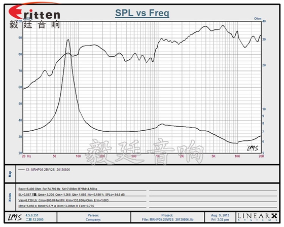 音圈阻抗(voice coil impedance):6.4Ω