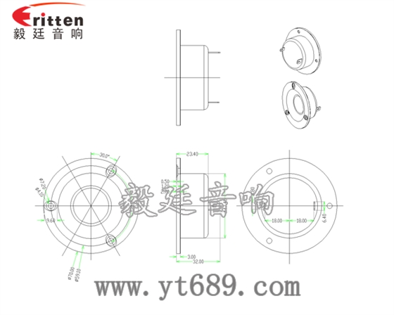 描述:圓形塑膠面板鋁外殼內(nèi)磁70mm15W故事機(jī)中高音喇叭;