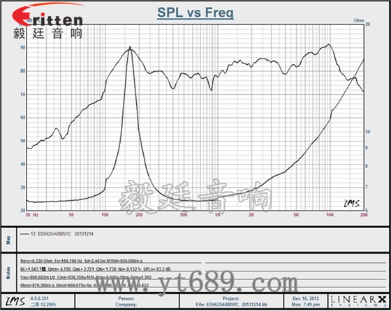 音圈阻抗(voice coil impedance):6.5Ω