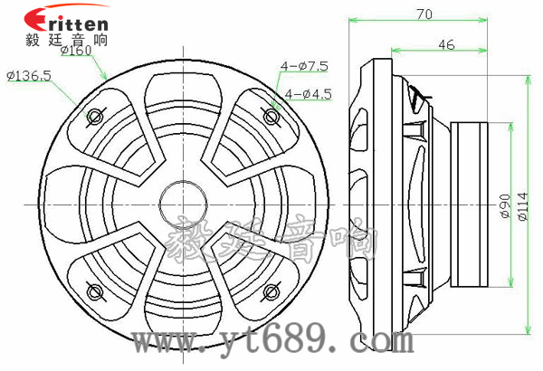5.25寸異型外磁銀色鐵盆架全頻喇叭,采用是高性能鐵氧體,音色清晰、飽滿;