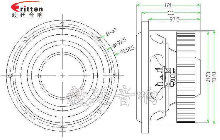 | 采用了泡邊紙盆,50芯銅線音圈,頻響范圍為44Hz~1.5KHz,低頻極震撼,音質(zhì);