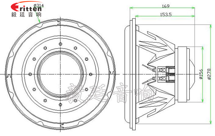 12寸圓型鋁盆架外磁重低音喇叭,采用的是高性能鐵氧體,音質(zhì)清晰,性能穩(wěn)定;
