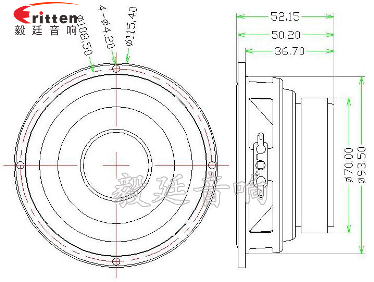 4寸圓形鐵盆架外磁中低音喇叭,采用了高性能的鐵氧體磁鋼,動力足,提高了喇叭的靈敏度,使發(fā)出完美音響效果;