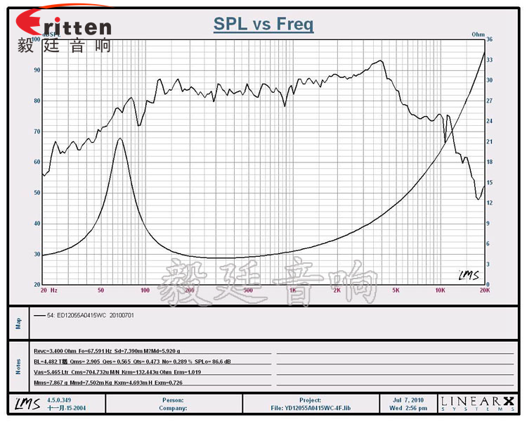 頻率范圍(freq response):65Hz~7KHz