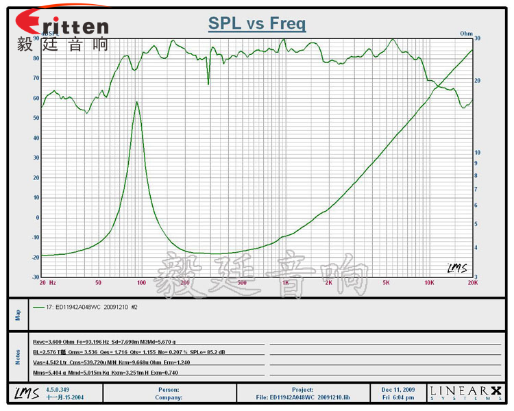 ★頻率范圍(freq response):93Hz~20KHz