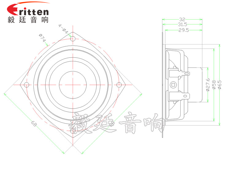 68mm異型鐵盆架內(nèi)磁全頻喇叭,采用了性價比高的鐵盆架,外觀漂亮,磁鋼采用了被譽為磁鋼之王的釹鐵硼,磁性強,動力足,永久不退磁;