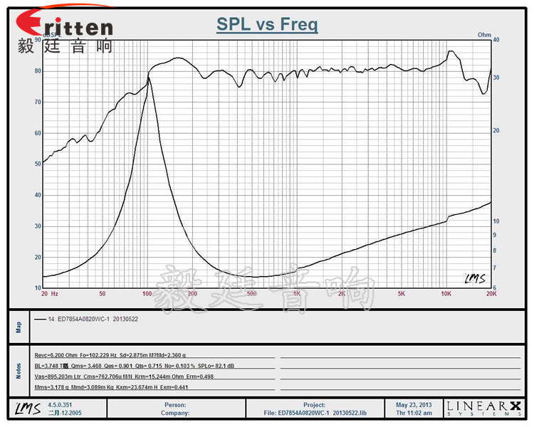 音圈阻抗(voice coil impedance):6.2Ω