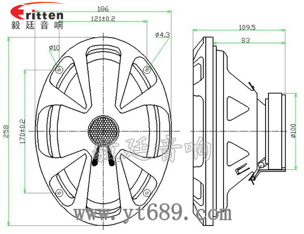 毅廷音響4寸高端品牌重低音喇叭正反面