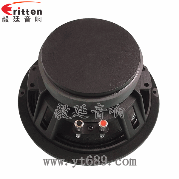 8寸圓形鋁盆架外磁中低音喇叭使得盆架格外強韌穩(wěn)固,銅材質(zhì)鍍金按壓式接線端子,配上紅黑正負(fù)極之分,接線方便。