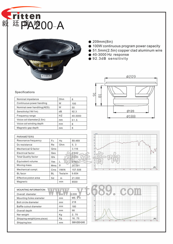東莞市毅廷音響科技有限公司嚴(yán)格貫徹,此款8寸50W汽車音響重低音喇叭,舞臺(tái)音箱,額定功率為50W,最大峰值100W,音域40Hz~3KHz,超重低音炮,下潛力深。