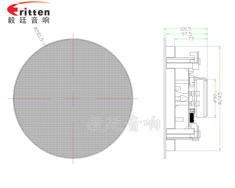 這款天花喇叭的外觀防塵罩,用的是高密度金屬網(wǎng)罩進過環(huán)保烤漆工藝,手感平滑,不褪色、不生銹、不氧化、超窄邊有圓形和正方形兩種防塵罩形狀,帶八個超強磁吸鐵,可吸性強,外觀大氣、精美,是毅廷喇叭工程師精心研發(fā)的一款超完美的8寸天花吸頂式喇叭。