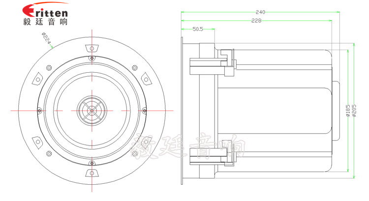 | 采用6.5寸凸橡膠邊PP盆,25芯KSV音圈,帶可傾斜30度全面旋轉(zhuǎn)20芯絲膜高音頭,指向性超強,音色清晰、飽滿;