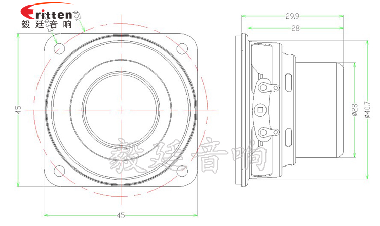 45mm方形鐵盆架內(nèi)磁全頻喇叭,采用稀土高強(qiáng)磁磁鋼,密度高,磁性強(qiáng),使音色清晰、飽滿;