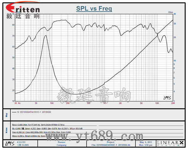 頻率范圍(freq response):77Hz~10KHz