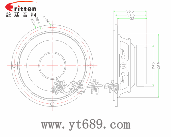 毅廷音響4寸高端品牌重低音喇叭正反面