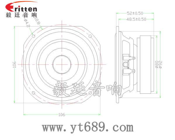 毅廷音響2.5寸5瓦全頻喇叭正反面